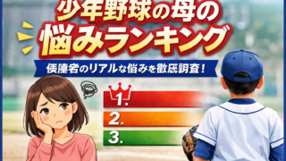少年野球に関わるお母さん・保護者の悩みをランキング形式で紹介。指導者との関係、試合に出られない不安、声かけや人間関係など、実際によく聞く悩みを事実ベースでまとめました。