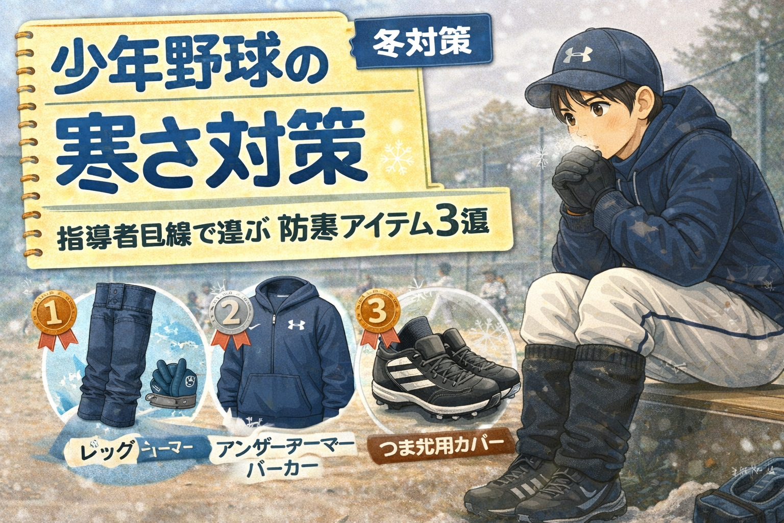 少年野球におすすめの寒さ対策アイテムを3つ紹介します。